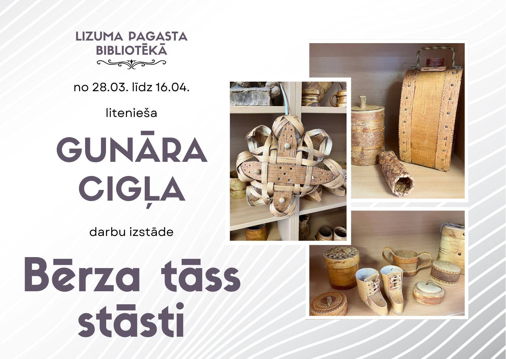 No 28.03. līdz 16.04. pagasta bibliotēkā litenieša Gunāra Cigļa darbu izstāde “Bērza tāss stāsti”